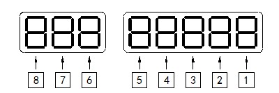 自動焊錫機進入運轉模式選擇狀態時,步序顯示器及資料顯示器顯示出八位數字的運轉模式設定值,若要變更設定時,請先按一鍵,讓小數點亮起,此時由右至左可分別按