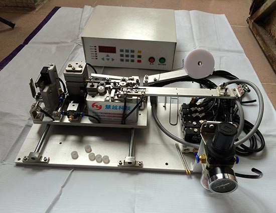 大量現貨出售變壓器繞線自動穿鐵氟龍套管機大量現貨出售變壓器繞線自動穿鐵氟龍套管機,現行繞線工位常用工法:由繞線工位人員將預先裁切成指定長度的套管從容器中手工分取、耗費單位工時較多,每穿一個套管的時間一般需3-4 S,一個繞組穿套管就至少耗時6 S時間,對上述加工方法,員工因加工工序較多,生產效率低。微電腦控制操作方便。全中文數控單片機控制顯示。工作原則:套管內徑≧ 多股線的直徑+0.12mm,穿套管所需工時由機構完全重疊隱藏于手工工時內,高頻變壓器穿套管機,自動穿套管機。套管由機構自動裁切,無需再預先加工,降低了加工工時也節約了投資成本。配合CNC使用方便,上手快,保證品質,提高生產效率。此機適合任何品牌繞線機,直接安裝就可以使用。非常方便.自動穿套管機適用于高頻變壓器廠商生產,其操作是市場上最簡單的人性化操作。