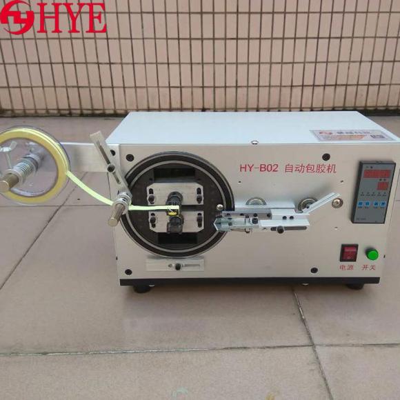 我司慧越科技HY-B02自動包膠機是膠布內圈34mm77mm均適用;兩軸式包膠布,膠布軸心距離自25-85mm均可調整;可包多種變壓器;尺寸:約長300x 550x 250mm;約重30KG。